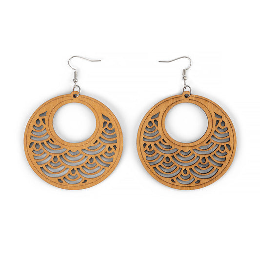 WAVES ROUND WOODEN GEOMETRIC EARRINGS