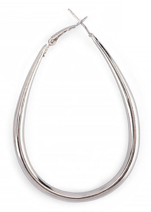 SILVER PLATED LONG OVAL DROP EARRINGS