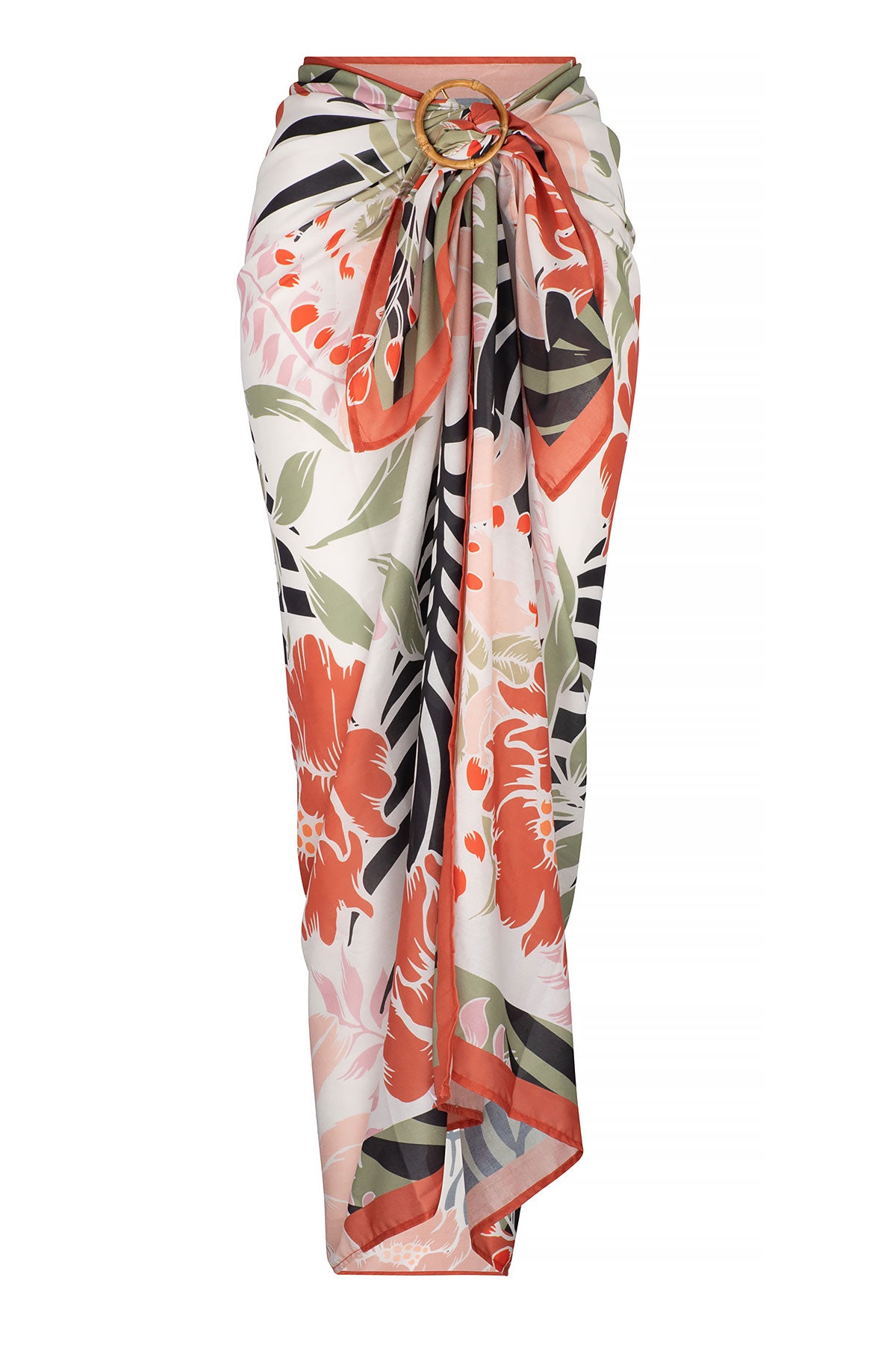 The Kauai Sarong in Tropical Print from our Resort Summer 26 Collection is crafted from a lightweight and breathable 100% Woven Polyester. This versatile piece can be styled in multiple ways and is designed for full coverage and all-day comfort. Our model is 5'9 (175 cm) and is size 12.